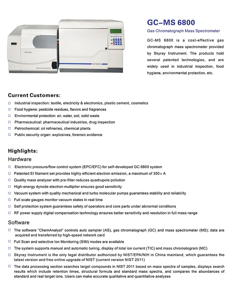 | ຄວາມອ່ອນໄຫວ | ສະແກນເຕັມ, 1pg OFN ທີ່ m/z 272 ດ້ວຍ S/N ≥30:1 (RMS) |